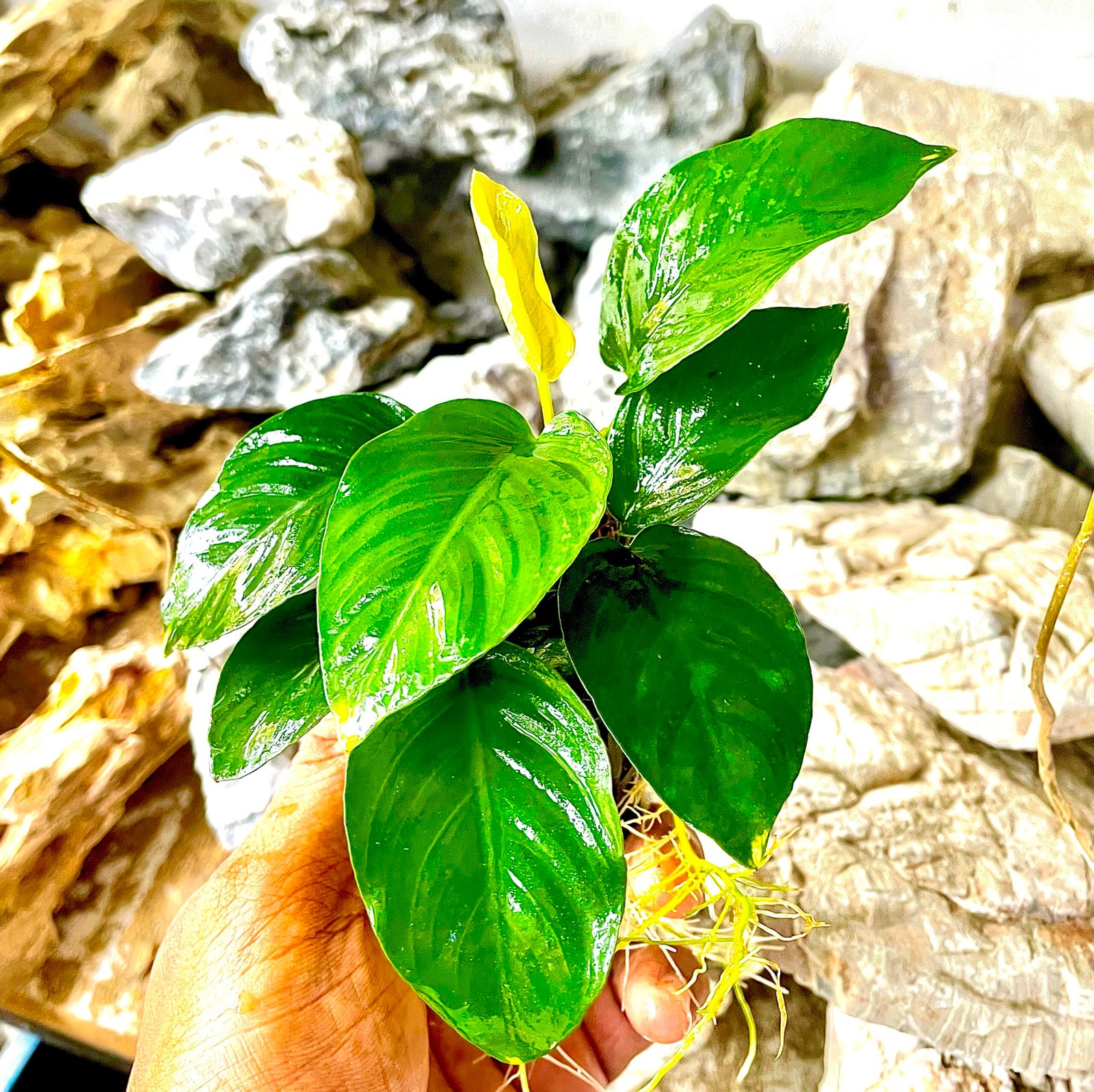 The Anubias Barteri (M-size) is a hardy and attractive aquarium plant with broad, dark green leaves. Ideal for midground placement, it adds a natural and elegant touch to any aquascape. Easy to care for and perfect for beginners.