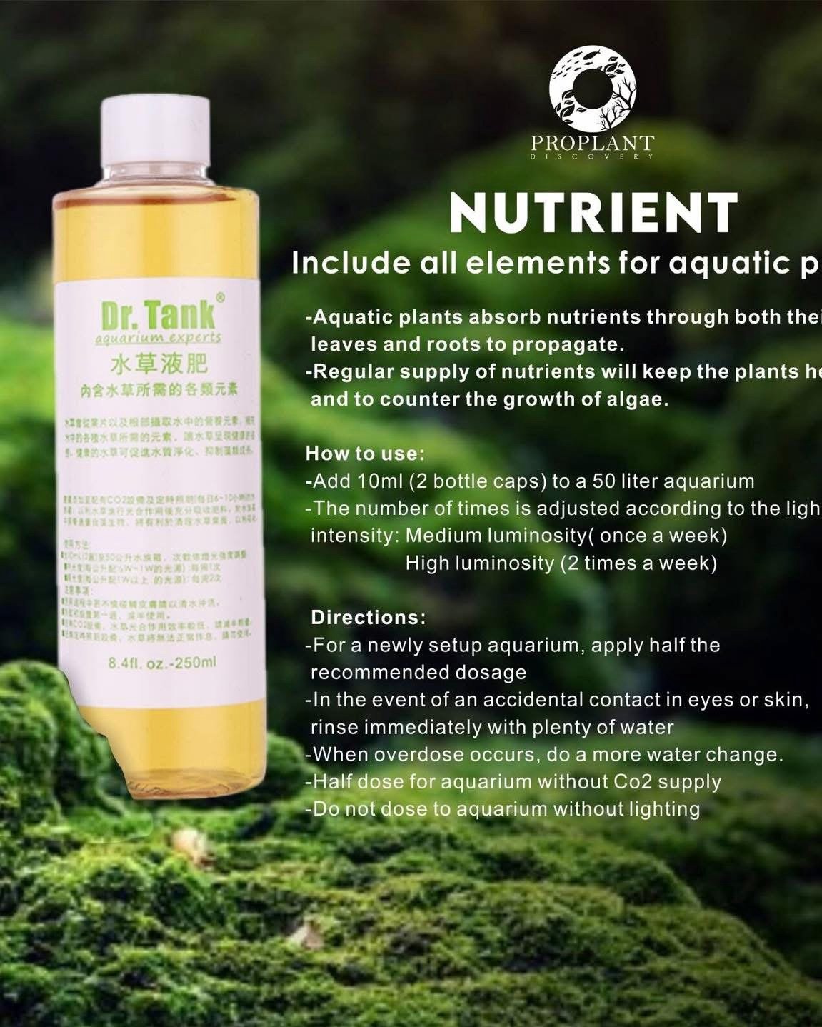 Dr. Tank All in One Fertilizer is a complete liquid nutrient solution specially formulated for all types of aquatic plants. It provides a balanced mix of macronutrients (NPK) and micronutrients (Fe, Mn, Zn, B, Cu, Mo) essential for vibrant and healthy plant growth. This easy-to-use fertilizer promotes lush green leaves, strong root development, and vivid coloration — ensuring your planted aquarium stays beautiful and thriving with minimal effort.