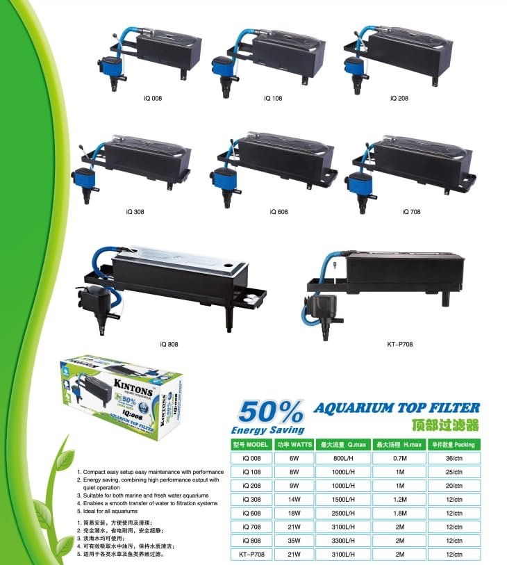 The KINTONS IQ-608 Top Filter is a powerful and efficient overhead filtration system designed to deliver crystal-clear water and strong water circulation for medium to large aquariums. With an impressive flow rate of 2500 L/h and 18W motor power, this filter ensures thorough mechanical and biological filtration, keeping your aquatic environment clean, healthy, and oxygen-rich. Its low-noise operation and easy setup make it an excellent choice for both home and professional aquariums.