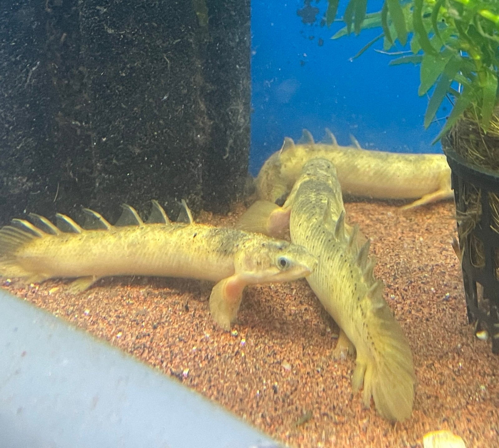 Marble Senegal Bichir (Polypterus senegalus – Marble Variant) Size: 4” – 5” Care Level: Easy to Moderate Temperament: Peaceful but predatory Diet: Carnivorous