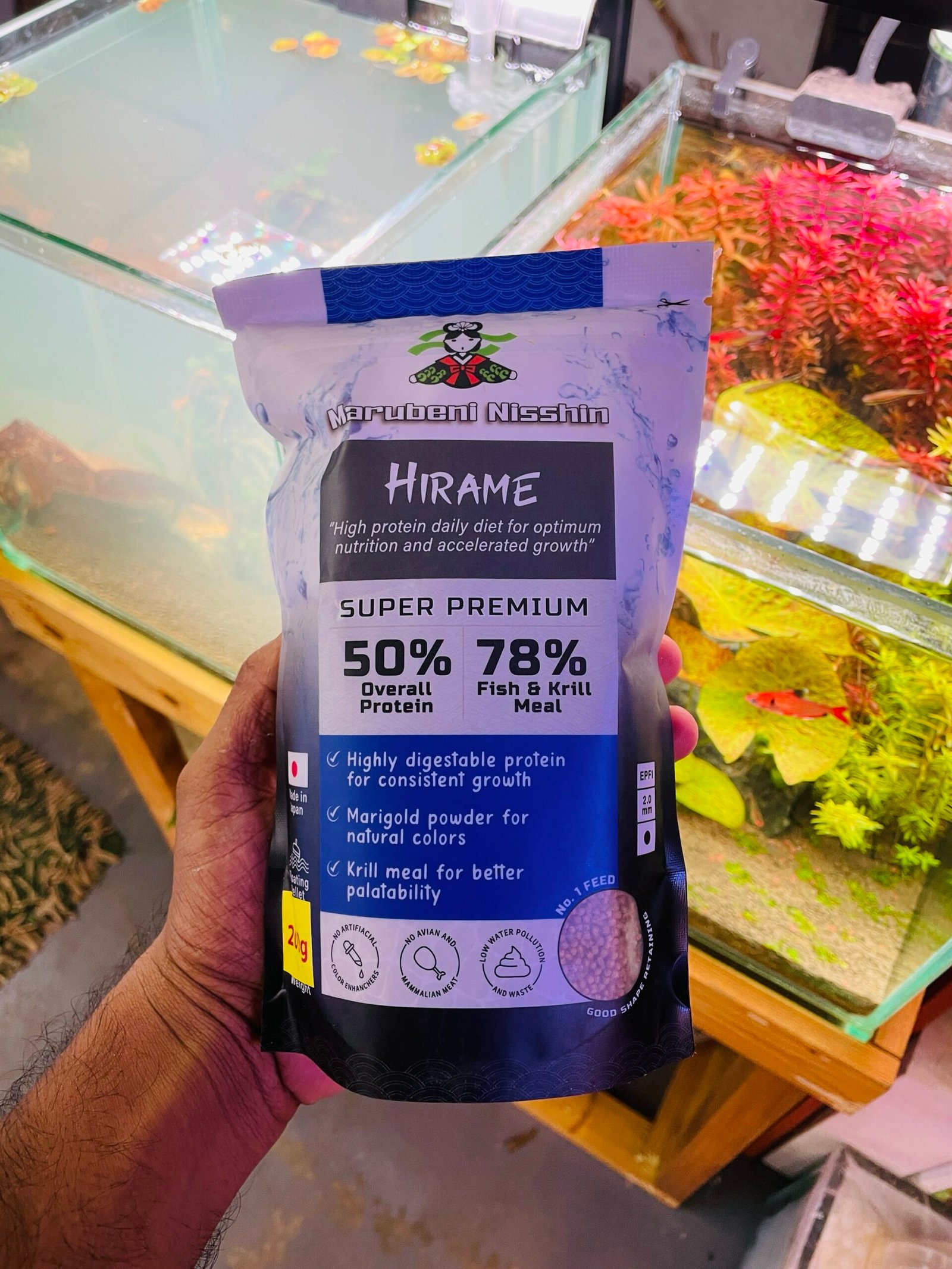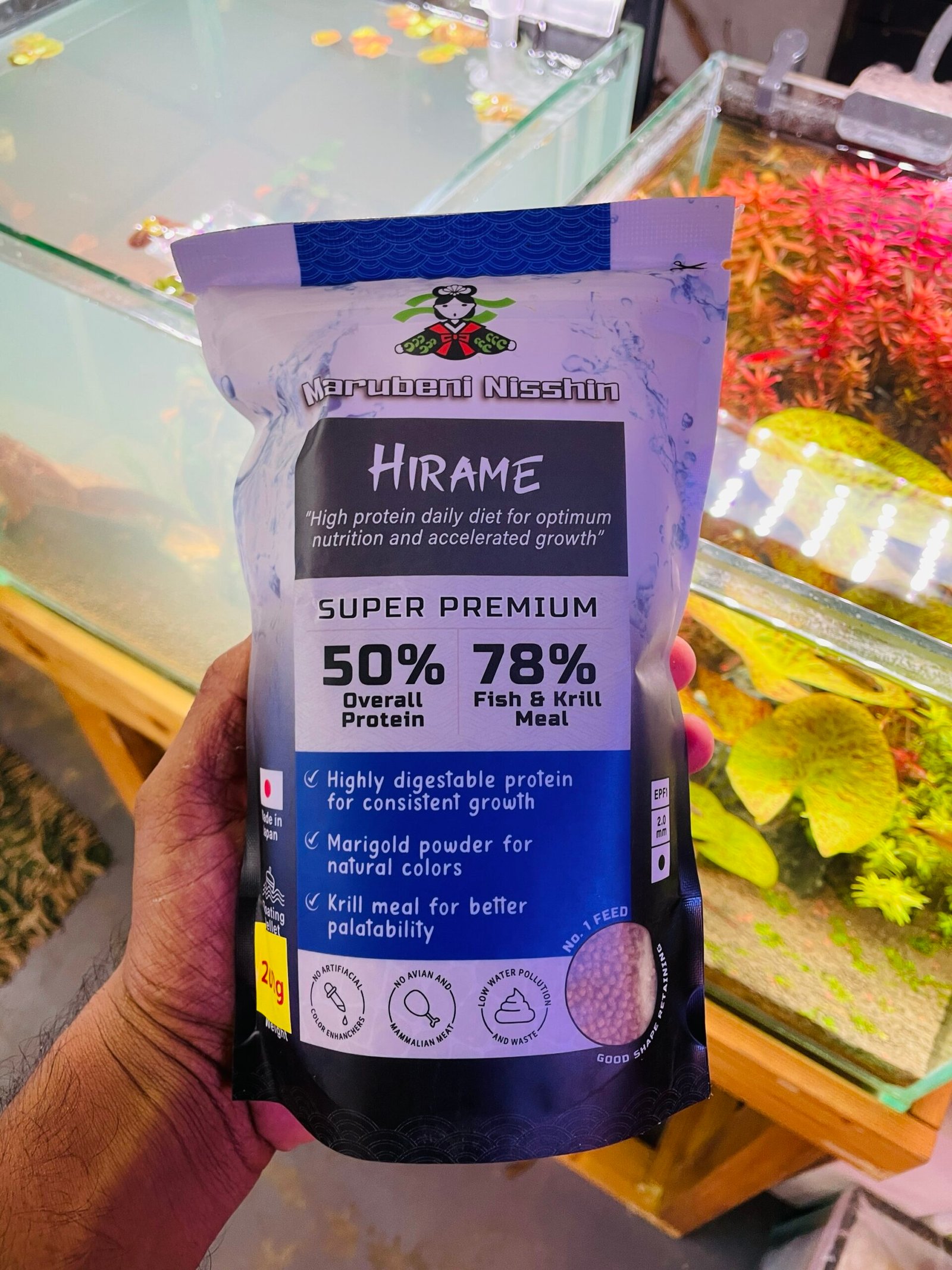 MN HIRAME EPF-2 is a premium sinking pellet feed designed for carnivorous and predatory fish. It provides balanced nutrition with high protein levels, essential vitamins, and minerals that support healthy growth, immunity, and natural coloration. These pellets are water-stable and easily digestible, helping to keep the aquarium environment clean.