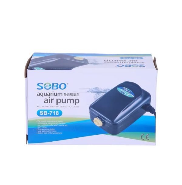 The SOBO SB-718 Silent Air Pump is a compact and efficient single-outlet air pump designed to provide reliable oxygen circulation in your aquarium. Its ultra-quiet operation and low power consumption make it ideal for small to medium aquariums, ensuring a healthy environment for your fish and aquatic plants. With durable construction and stable air output, this air pump is perfect for everyday use in both freshwater and marine setups.