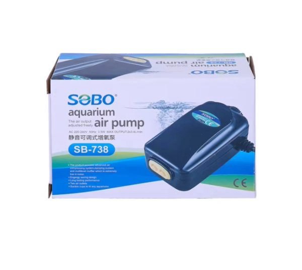 The SOBO SB-738 is a high-performance dual outlet air pump designed to provide optimal aeration for your aquarium. Built with advanced technology, it delivers a powerful, consistent airflow while maintaining ultra-quiet operation, ensuring a peaceful environment for both fish and aquarium enthusiasts. Ideal for medium to large aquariums, this energy-efficient air pump enhances oxygen circulation, supporting healthy aquatic life and crystal-clear water conditions.