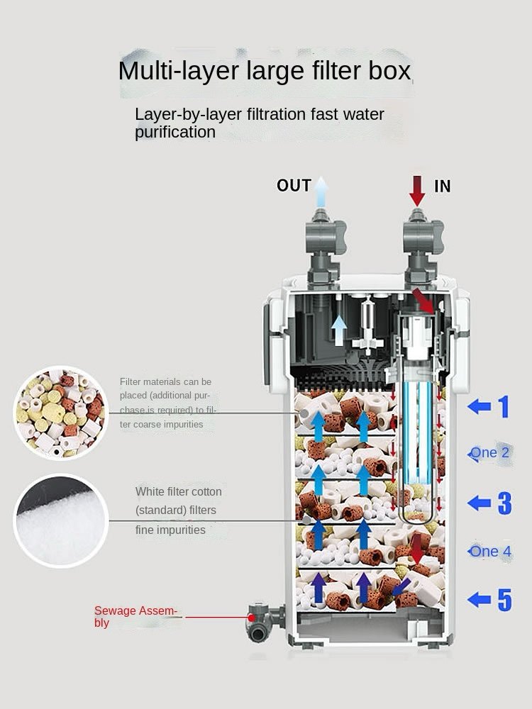 Three-Stage Filtration: Combines mechanical, chemical, and biological filtration for crystal-clear water.